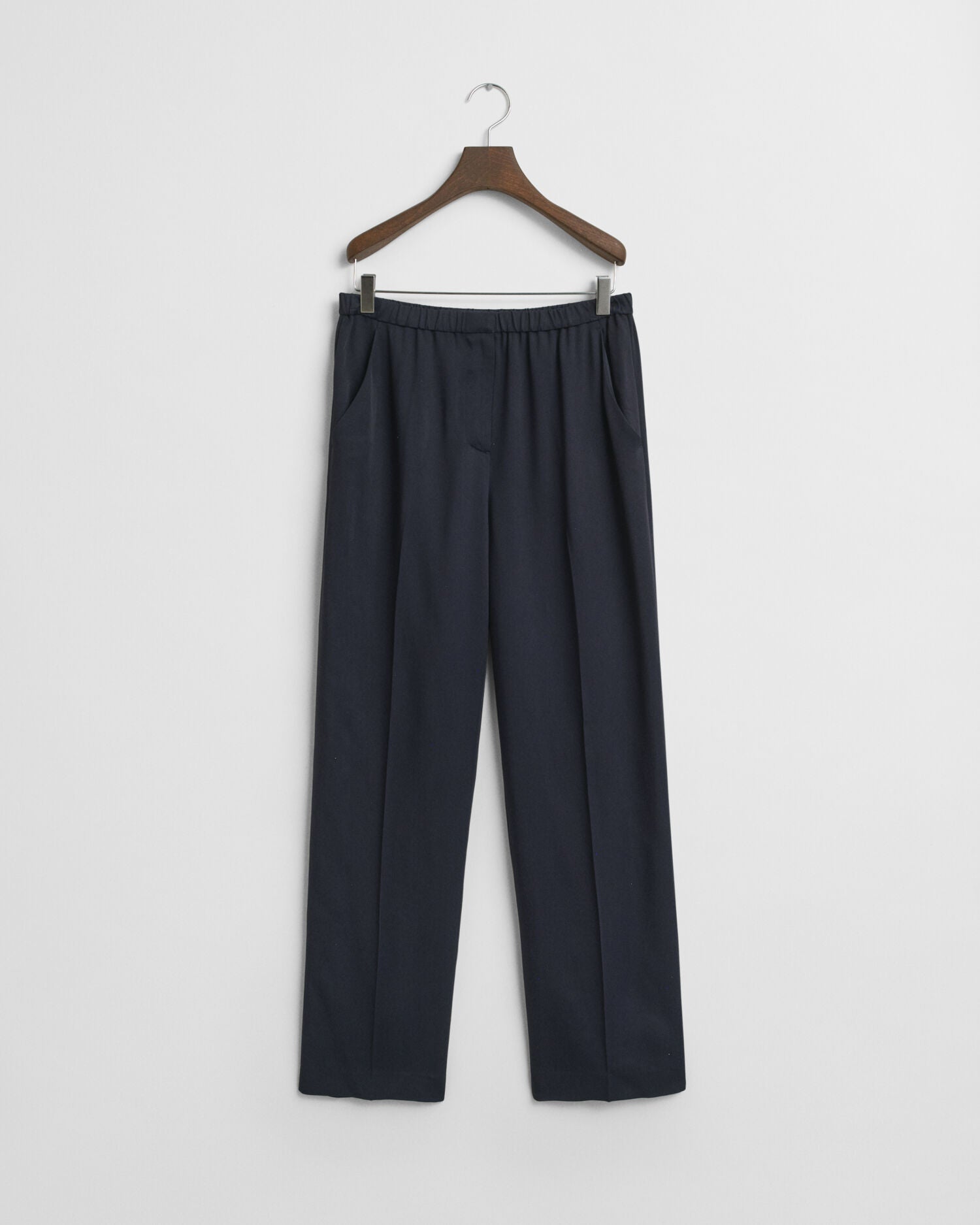Made from a fluid viscose fabric, these pants offer plenty of comfort without sacrificing an inch of style. Perfect for the warmer seasons, they are designed with a relaxed fit, mid-rise waist and straight legged silhouette. The pants are further detailed with an elastic waistband, a sleek hidden front zipper, hook-and-bar closure and side seam pockets.